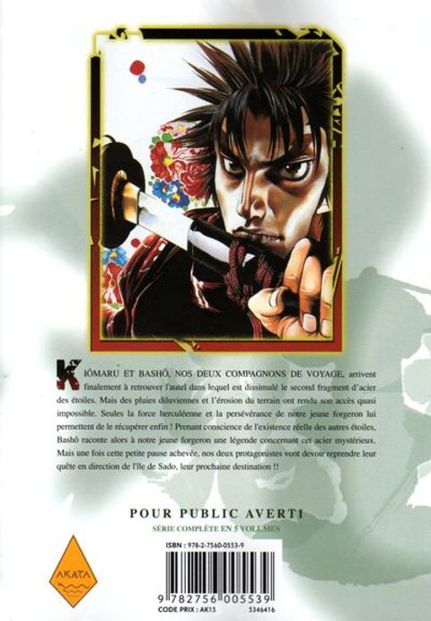 Kiômaru et Bashô, nos deux compagnons de voyage, arrivent finalement à retrouver l'autel dans lequel est dissimulé le second fragment de météorite. Mais des pluies diluviennes ont rendu son accès quasiimpossible et seules la force herculéenne et la persévérance de notre jeune forgeron lui permettent de le récupérer ! Bashô raconte alors à notre héros une légende concernant cet acier mystérieux...