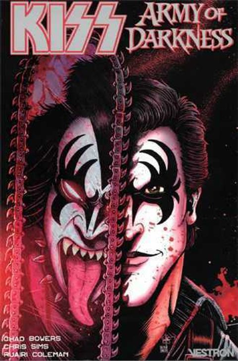 Ash, le héros de la saga Evil Dead fait équipe avec KISS, le groupe le plus ‘HOT’ du monde, pour déchiqueter les cadavéreux dans le moyen-âge hanté d’Army of Darkness ! 1979. KISS s’est volatilisé en plein concert et Ash n’est jamais allé dans la cabane trouver le Necronomicon… mais le destin le rattrape sous la forme d’un sorcier qui l’envoie au moyen-âge, pour un remake d’Evil Dead 3 dont il n’est pas le héros… Pourchassé par les cadavéreux et complètement paumé, il ne pourra compter que sur 4 chevaliers outrageusement maquillées !