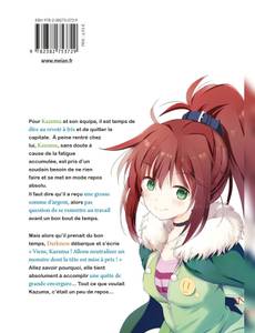 Pour Kazuma et son équipe, il est temps de dire au revoir à Iris et de quitter la capitale. À peine rentré chez lui, Kazuma, sans doute à cause de la fatigue accumulée, est pris d'un soudain besoin de ne rien faire et se met en mode repos absolu.Il faut dire qu'il a reçu une grosse somme d'argent, alors pas question de se remettre au travail avant un bon bout de temps.Mais alors qu'il prenait du bon temps, Darkness débarque et s'écrie " Viens, Kazuma ! Allons neutraliser un monstre dont la tête est mise à prix ! " Allez savoir pourquoi, elle tient absolument à accomplir une quête de grande envergure... Tout ce que voulait Kazuma, c'était un peu de repos...