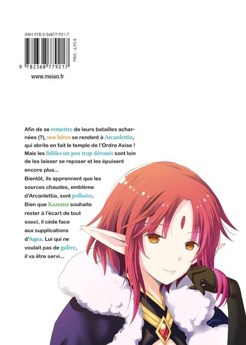 Afin de se remettre de leurs batailles acharnées (?), nos héros se rendent à Arcanlettia, qui abrite en fait le temple de l'Ordre Axise ! Mais les fidèles un peu trop dévoués sont loin de les laisser se reposer et les épuisent encore plus... Bientôt, ils apprennent que les sources chaudes, emblème d'Arcanlettia, sont polluées. Bien que Kazuma souhaite rester à l'écart de tout souci, il cède face aux supplications d'Aqua. Lui qui ne voulait pas de galère, il va être servi...