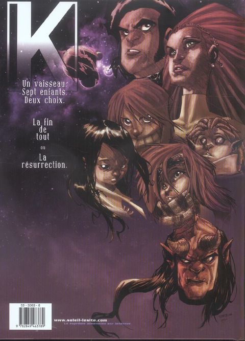 Un futur, un jour tragique. Au-delà de la frontière des systèmes répertoriés par l'Homme, une vague destructrice rouge sang déferle sur l'univers, et raye de la carte Callystès, Dakoï, Lilith, la Terre... Rescapé, un vaisseau file à travers l'espace. La lettre « K » est inscrite sur son flanc. À son bord, un équipage hétéroclite : sept enfants, plusieurs adultes, un vieux chevalier sorcier, le fantôme d'un cyborg... Et un mystérieux chargement qui pourrait peut-être inverser la situation...