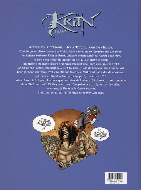 Déclinaison sous forme de gags en une page de la célèbre parodie d'Heroïc Fantasy Krän le Barbare, Krän Univers reprend les ingrédients qui ont fait le succès de la série : un barbare aussi fort que stupide, un ton décalé à la Monthy Python, des chevaliers débiles et des monstres méchants comme s'il en pleuvait. Les aficionados du barbare à la hache y retrouveront avec plaisir leur héros favori accompagné de son fidèle Kunu et de son garou familier !