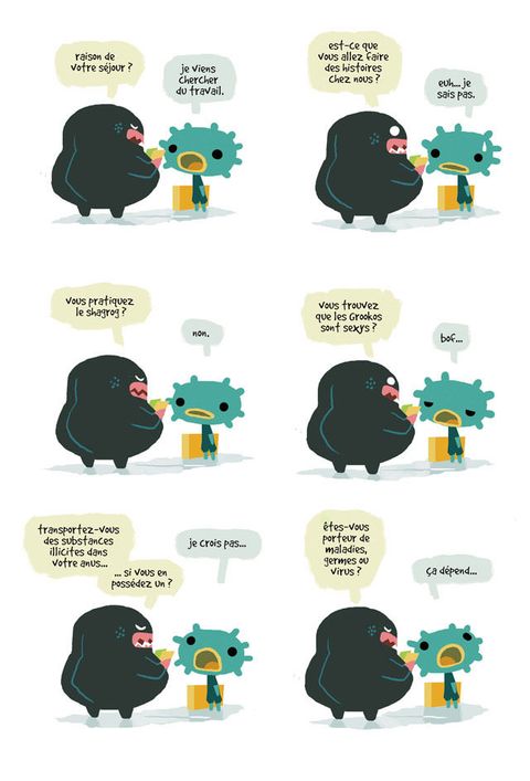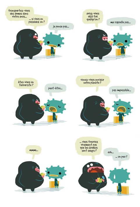 Pauvre Krrpk, petit alien fraîchement débarqué sur la planète Grook, peuplée d'êtres franchement inhospitaliers, honteusement arrogants et ouvertement racistes. Dès son arrivée, il comprend qu'il n'est pas le bienvenu et qu'il va en baver. Mais Krrpk s'en fiche parce qu'il a un plan, parce qu'il sait qu'ils ne vont pas rigoler longtemps... et parce qu'il n'est pas très malin non plus.