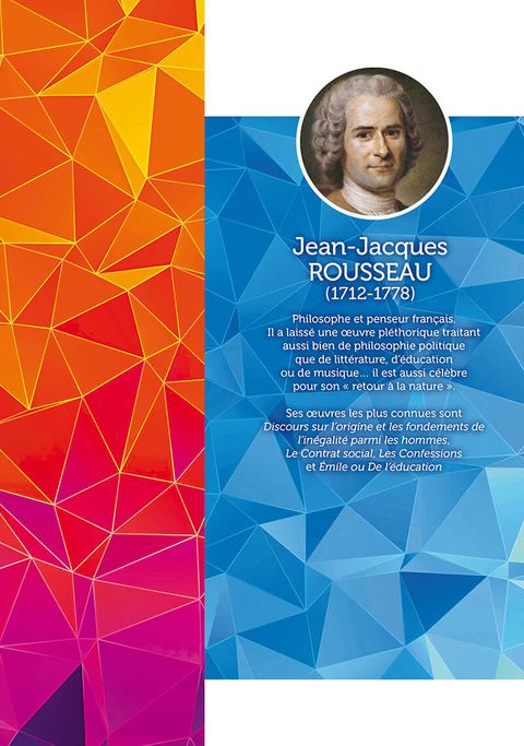 Philosophe et penseur français, Jean-Jacques Rousseau a laissé une œuvre pléthorique traitant aussi bien de philosophie politique que de littérature, d’éducation ou de musique… il est aussi célèbre pour son « retour à la nature ». Ses œuvres les plus connues sont Discours sur l’origine et les fondements de l’inégalité parmi les hommes, Le contrat social, Les confessions et Émile ou De l’éducation.