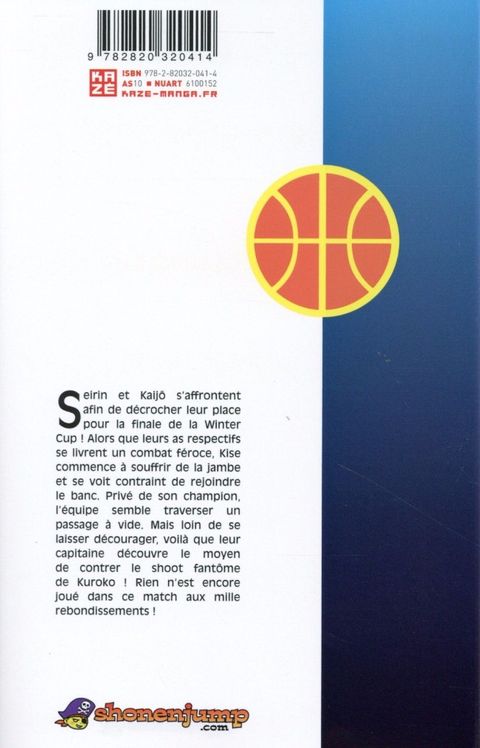 Seirin et Kaijô s'affrontent afin de décrocher leur place pour la finale de la Winter Cup ! Alors que leurs as respectifs se livrent un combat féroce, Kise commence à souffrir à la jambe et se voit contraint de rejoindre le banc. Privé de son champion, l'équipe semble traverser un passage à vide. Mais loin de se laisser décourager, voilà que leur capitaine découvre le moyen de contrer le shoot fantôme de Kuroko ! Rien n'est encore joué dans ce match aux mille rebondissements !