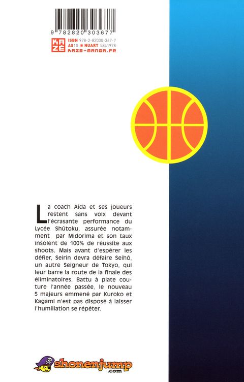 La coach Aida et ses joueurs restent sans voix devant l'écrasante performance du Lycée Shûtoku, assurée notamment par Midorima et son taux insolent de 100% de réussite aux shoots. Mais avant d'espérer les défier, Seirin devra défaire Seihô, un autre Seigneur de Tokyo, qui leur barre la route de la finale des éliminatoires. Battu à plate couture l'année passée, le nouveau 5 majeur emmené par Kuroko et Kagami n'est pas disposé à laisser l'humiliation se répéter.
