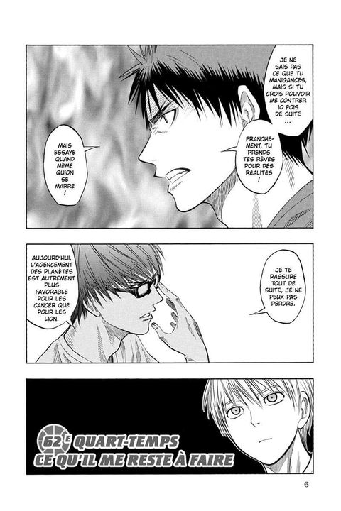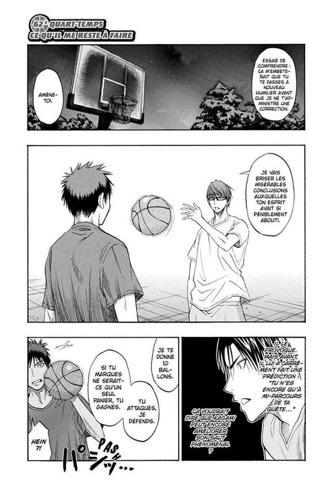 Après bien des doutes, le premier stage de préparation en vue de la Winter Cup permet finalement à Kagami et Kuroko de chacun se trouver un nouveau style de jeu… Alors que Seirin se relève petit à petit de sa défaite, pour les équipes qui ont passé les playoffs, la compétition continue ! Ainsi, le prestigieux interlycées s'ouvre sur le choc de deux titans : Tôô Gakuen contre Kaijô... Ou plutôt : Aomine, le player ultime, contre Kise, le prodige du mimétisme.