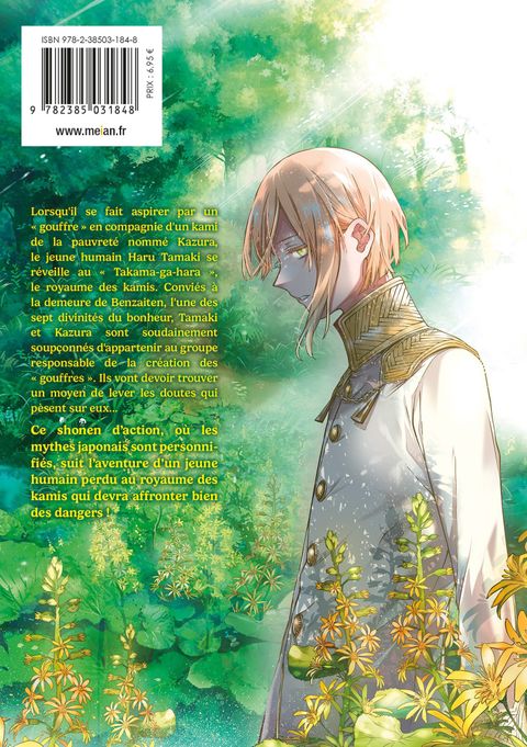 Le jeune garçon a finalement formulé son voeu et va gagner le pouvoir de faire face aux kamis malfaisants...Pour revenir aux jours heureux qu'on lui a arrachés, il va donner forme à la flamme qui brûle dans son âme...Lorsqu'il se fait aspirer par un " gouffre " en compagnie d'un kami de la pauvreté nommé Kazura, le jeune humain Haru Tamaki se réveille au " Takama-ga-hara ",le royaume des kamis. Conviés à la demeure de Benzaiten, l'une des sept divinités du bonheur, Tamaki et Kazura sont soudainement soupçonnés d'appartenir au groupe responsable de la création des " gouffres ". Ils vont devoir trouver un moyen de lever les doutes qui pèsent sur eux...Un affrontement déchirant s'apprête à commencer...Ce shonen d'action, où les mythes japonais sont personnifiés, suit l'aventure d'un jeune humain perdu au royaume des kamis qui devra affronter bien des dangers !