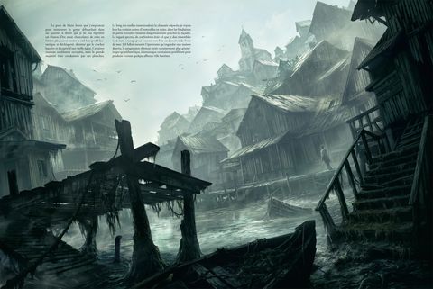 Féru de l'histoire de la Nouvelle-Angleterre, un jeune homme entreprend un voyage dans les cités anciennes de la région. En route pour Arkham, on lui propose d'emprunter une ligne de bus passant par Innsmouth, une ville côtière isolée. La simple évocation de cette localité semble provoquer un vif sentiment de répulsion chez les habitants des villes voisines ; dans un musée local, des bijoux en or provenant d'Innsmouth, aux formes et aux motifs étrangement dérangeants, attisent sa curiosité. Il décide alors de se rendre sur place.Autrefois port de pêche prospère et centre industriel florissant, cette ville lugubre n'est désormais plus que l'ombre d'elle-même. Malgré le dégoût que lui inspirent la morphologie anormale de certains habitants et les ruelles sombres où flotte une insupportable odeur de poisson, le jeune homme éprouve une envie irrésistible d'en apprendre davantage sur Innsmouth. Zadok, un vieil ivrogne aigri, lui livre une partie du passé trouble de la ville : dans les années 1800, Obed Marsh, un capitaine pratiquant le commerce avec de lointaines peuplades polynésiennes, fonda un culte païen, l'Ordre ésotérique de Dagon, qui s'imposa progressivement à tous les habitants. Zadok prétend que Marsh aurait scellé un pacte avec des monstres venus des profondeurs de la mer, qui lui assuraient une prospérité exceptionnelle en échange d'un pacte innommable.Alors que le jeune voyageur s'apprête à repartir, le bus tombe subitement en panne. Il n'a pas d'autre choix que de passer la nuit à Innsmouth... Venelles étroites et tortueuses, habitants au faciès hideux terrés dans des maisons pourrissantes, légendes répugnantes sur d'anciens rites blasphématoires, créatures marines émergeant des flots fétides pour entretenir des relations contre nature avec les ancêtres de Marsh... Avec cette nouvelle, Lovecraft signe l'un des chefs-d'oeuvre de la littérature d'horreur du début du xxe siècle, pièce maîtresse de son « régionalisme cosmique », qui, comme bon nombre de ses récits, influencera durablement l'imaginaire de générations d'artistes.Fasciné depuis toujours par l'univers de H.P. Lovecraft, François Baranger, illustrateur reconnu dans le monde entier pour ses talents de concept-artist dans le cinéma et le jeu vidéo, s'est attelé à la tâche « cyclopéenne » de mettre en image les principaux récits de cet auteur. « L'une des difficultés chez Lovecraft est que ses horreurs et ses décors sont notoirement difficiles à dépeindre, mais François Baranger en a réalisé une brillante interprétation. Et je suis sincèrement enchanté et honoré d'avoir l'opportunité de préfacer cet ouvrage. » Sandy Petersen (le jeu de rôle L'Appel de Cthulhu, le jeu de société Cthulhu Wars)