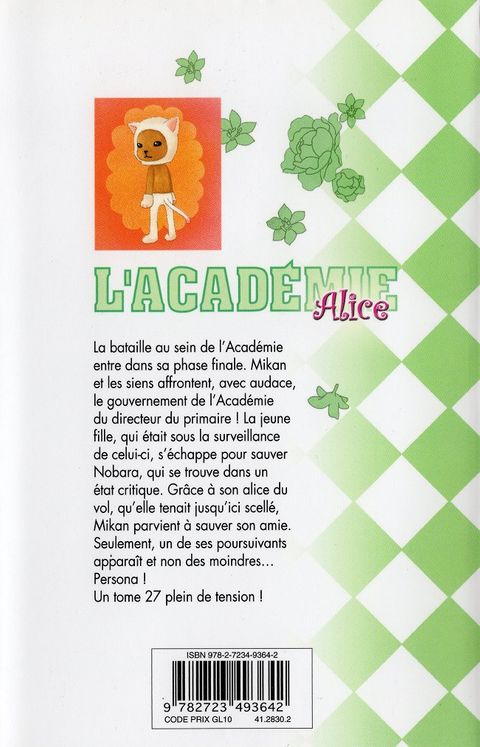 La bataille au sein de l’Académie entre dans sa phase finale. Mikan et les siens affrontent, avec audace, le gouvernement de l’Académie du directeur du primaire ! La jeune fille, qui était sous la surveillance de celui-ci, s’échappe pour sauver Nobara, qui se trouve dans un état critique. Grâce à son alice du vol, qu’elle tenait jusqu’ici scellé, Mikan parvient à sauver son amie. Seulement, un de ses poursuivants apparaît et non des moindres… Persona !
