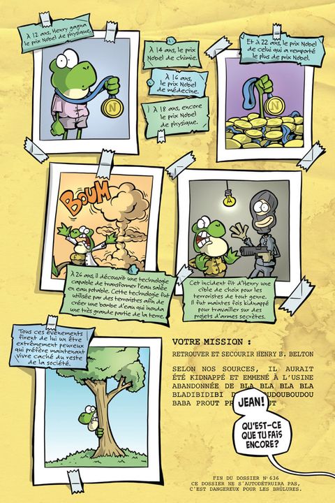 Couverture souple avec rabats. Dans un monde où foisonnent les criminels, les terroristes et les complots gouvernementaux, un petit groupe de personnes contrôle une organisation ultra-gigasecrète tout simplement nommée l'Agence. Cette organisation légendaire regroupe les plus grands génies et ceux-ci ont pour mission de protéger notre monde. Cependant, une anomalie vient de se produire. Un agent surdoué, mais aux méthodes insolites, s'apprête à faire son entrée. Son nom : Jean. Il fera basculer l'équilibre mondial.