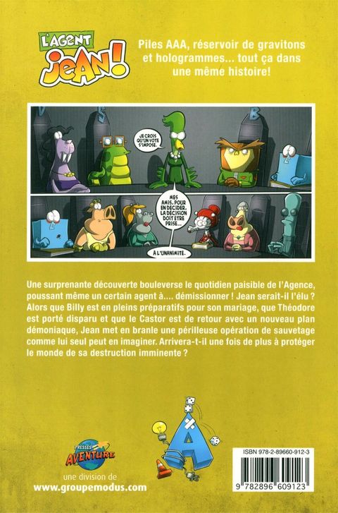 Le Castor a piraté le système de communication de l'Agence, Jean est promu au titre d'agent AAA, Théodore se fait enlever, et Billy et Polo se marient. Aucun doute, l'auteur repousse une fois de plus les limites de l'imaginaire.