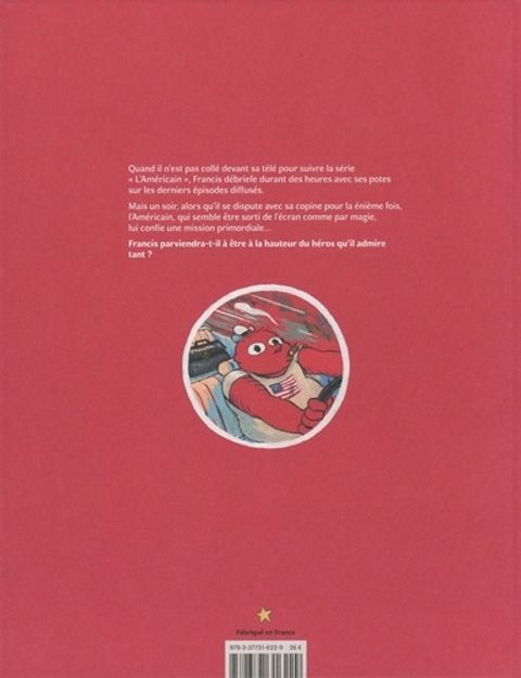 L’Américain est une série télé un peu ringarde dont Francis, qui vit en couple avec Claire depuis peu, est un fan absolu. Quand il n’est pas collé à son petit écran, Francis échange des nuits entières avec ses amis sur son héros préféré. Mais un soir, alors que Francis et Claire se disputent pour la énième fois (Francis est au chômage et ne fait aucun effort pour chercher un travail, ce qui ulcère Claire), l’Américain, comme sorti par magie de l’écran, sonne à la porte de leur appartement et confie à Francis une mission : protéger coûte que coûte une mallette… Francis deviendra-t-il à son tour un super-héros capable de sauver le monde ?