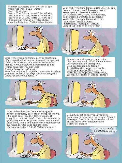 Internet, c'est magique, et les sites de rencontre, carrément génial ! Sinon, comment ferait-on pour rencontrer l'âme soeur qui habite à deux rues de chez soi ? Après les réseaux sociaux, Fred Janin et Gilles Dal partent à l'assaut des sites de rencontres, armés de leur plume incisive, de leur humour... et de leur bon sens ! Par écrans interposés, un homme et une femme écrivent leur roman d'amour, puis de désamour. Du virtuel au réel, l'espoir d'avoir enfin trouvé l'âme soeur, contrebalancé par l'angoisse de ne pas plaire pousse les êtres raisonnables que nous sommes censés être dans des retranchements insoupçonnés... et franchement comiques !
