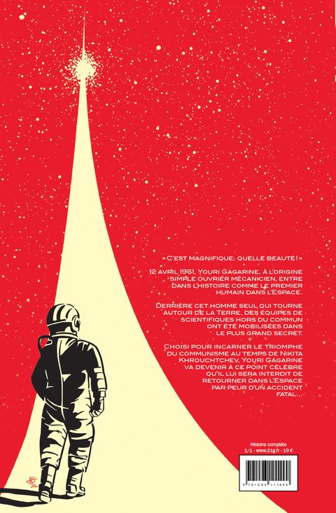 Son visage souriant et sympathique en a fait une icône internationale, au-delà de la Guerre froide, Youri Gagarine est le premier héros de la conquête spatiale, l'avant-garde de la plus grande aventure du XXe siècle. Ayant accepté des risques incroyables, il a été sélectionné par l'Union soviétique pour la représenter aux yeux du monde, tout en cachant l'énorme machine technique, scientifique et industrielle qui a pu le propulser en orbite, et surtout son mystérieux ingénieur en chef, Serguei Korolev, dont l'identité restera cachée pendant des années. Korolev a été sorti du goulag pour doter son pays de lanceurs nucléaires, tandis qu'aux États-Unis, Wernher von Braun se voyait exonéré de son passé au service de l'Allemagne Nazie pour créer des fusées tout aussi redoutables...