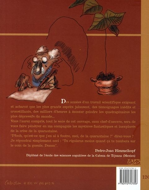 Le célèbre Professor Pedro-Joao Himmelkopf, seul scientifique au monde à sintéresser à la crise de la quarantaine, nous propose de comprendre le comportement de lhumain face à ce douloureux problème. À mi-chemin entre le roman et la bande dessinée, LAngelus de midi explore à travers un ton inédit chez Manu Larcenet, lhumour et la dérision. Second livre dans la collection Pas vu Pas pris, inauguré avec le maintenant célèbre Critixman.