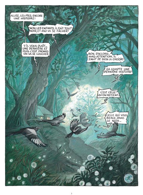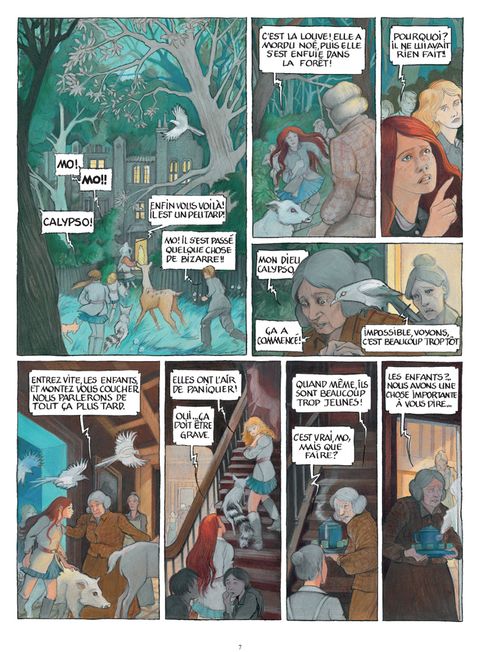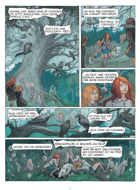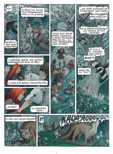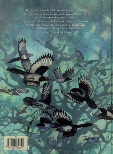 C'est trop tôt, beaucoup trop tôt, mais qu'importe... Le chasseur est là, et les enfants du pensionnat s'enfuient devant les chevaux lancés à leur poursuite. Pas un n'échappera aux filets qui les arrachent impitoyablement à la forêt qui les a vus grandir, pas même Nel, qui s'était pourtant jurée de ne jamais quitter Ulysse, son animal totem, ni la ville basse où elle a été élevée. Emmenée de force dans la ville haute, elle ne pense qu'à retourner d'où elle vient. Saura-t-elle écouter les pies qui ont bercé son enfance et retrouver le monde qui la hante ?... Toujours très sensible à la poésie fantastique, Daria Schmitt reprend ses pinceaux pour un one shot en forme de parcours initiatique.
