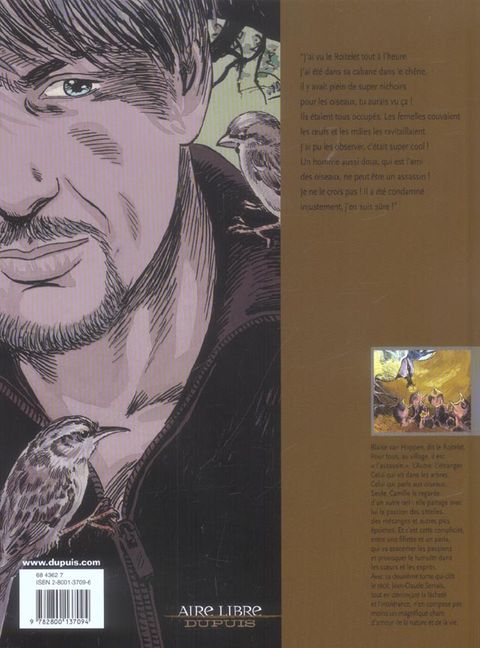 Conviction d'innocence Blaise Van Hoppen, dit le Roitelet, est un paria. Son retour au village dérange. Aux yeux de tous, il reste l'assassin d'Aline, la cabaretière ; ses douze années d'emprisonnement ne lui ont pas permis de se racheter. Il n'y a guère que Camille, la fille du maire, pour le regarder autrement. Comme lui, elle reconnaît les oiseaux à leur chant. Comme lui, elle leur parle. Comme lui, elle a pour eux une infinie tendresse. Là où les villageois ne voient que danger, Camille ne voit dans le Roitelet que douceur et innocence. Pour elle, c'est sûr, cet homme n'a jamais tué... À noter qu'un dossier pédagogique de seize pages, rédigé par des ornithologues passionnés et richement illustré par l'auteur, offrira aux amateurs une mine d'informations sur les oiseaux de nos contrées.