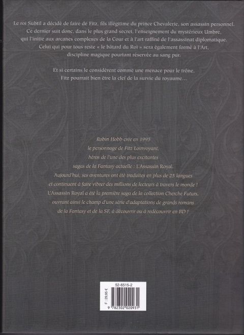 Le roi Subtil a décidé de faire de Fitz, fils illégitime du prince Chevalerie, son assassin personnel. Ce dernier suit donc, dans le plus grand secret, l'enseignement du mystérieux Umbre, qui l'initie aux arcanes complexes de la Cour et à l'art raffiné de l'assassinat diplomatique. Celui qui pour tous reste « le bâtard du Roi » sera formé à l'Art, discipline magique pourtant réservée au sang pur. Et quoique certains le considèrent comme une menace pour le trône, Fitz pourrait bien être la clef de la survie du royaume. Robin Hobb crée en 1995 Fitz Loinvoyant, héros de L'Assassin royal. Ses aventures ont été traduites dans le monde entier et continuent à faire vibrer des millions de lecteurs. Contient les tomes 1 À 4.