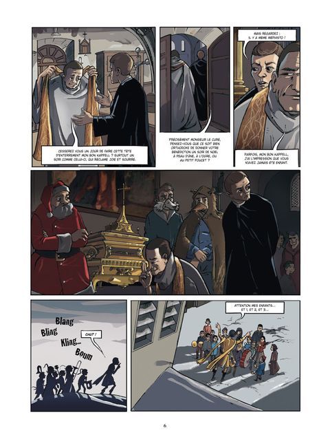 Il était une fois Mortefond, charmant village de Lorraine qui s'apprête à fêter la Noël. Le père Cornusse joue comme chaque année le rôle du Père Noël, tandis que Catherine, sa fille, rêve d'un prince charmant et que les hommes du village rêvent à elle. Prosper Lepicq, un étranger au village, se joint à la population locale pour la fête. Mais après la messe, on découvre le corps du Père Noël, assassiné ! Qui parmi ce panel de personnages truculents a bien pu commettre le meurtre, dans ce bourg isolé et apparemment paisible ?Voici, par les facétieux Adam et Convard, l'adaptation très libre d'un roman de Pierre Véry, datant de 1934 et adapté au cinéma en 1941 par Christian Jaque. Un album flirtant entre le merveilleux et le policier, magnifiquement dessiné par Paul, dont le graphisme original, poétique et pictural, ne cesse de s'affirmer.
