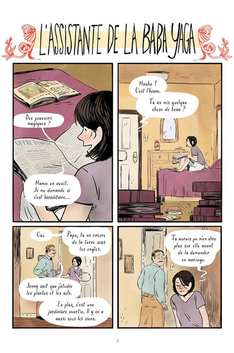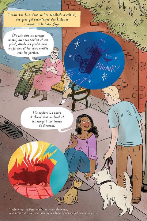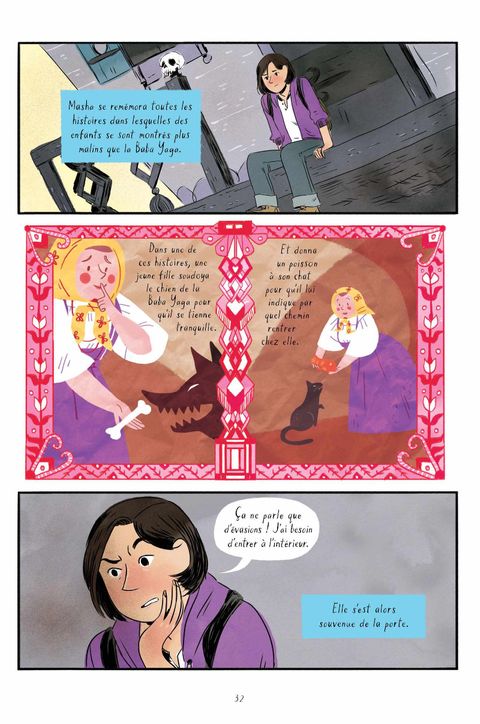 « URGENT : RECHERCHE ASSISTANT(E) Compétences en transport, cuisine et nettoyage exigées.Doit savoir obéir aux ordres. Avoir des pouvoirs magiques est un plus.Ne pas avoir le vertige est impératif. Entrez dans la maison de la Baba Yaga pour postuler. » La plupart des enfants réfléchissent à deux fois avant de pénétrer dans une forêt hantée, remplie de créatures terrifiantes, et d'affronter la sorcière qui y habite... mais pas Masha. Sa chère grand-mère lui a appris beaucoup de choses : les contes sont utiles,la magie est capricieuse.Rien n'est jamais trop difficile dans la vie. Il n'existe rienqui ne puisse être arrangé. La redoutable sorcière du folklore russe a besoin d'une assistante, et Masha d'une aventure. Elle pourrait être assez maligne pour entrer dans la maison montée sur pattes de poulet de la Baba Yaga, mais à l'intérieur de ses murs, les pièges sont nombreux. Pour gagner sa place, Masha va devoir passer une série de tests, duper un ours et préparer à manger pour son hôte. Mais ce n'est pas facile quand des enfants sont au menu ! Marika McCoola nous offre une première histoire amusante, effrayante, poignante et richement illustrée par l'artiste réputée Emily Carroll (Dans les bois). Cet ouvrage a été sélectionné aux Eisner Awards 2016, dans la catégorie « Best Publication for Kids ».