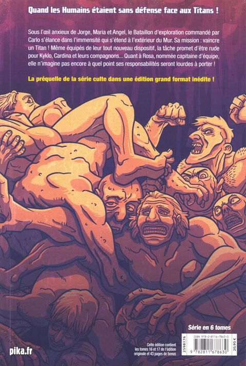 Sous l’œil anxieux de Jorge, Maria et Angel, le Bataillon d’exploration commandé par Carlo s’élance dans l’immensité qui s’étend à l’extérieur du Mur. Sa mission : vaincre un Titan ! Même équipés de leur tout nouveau dispositif, la tâche promet d’être rude pour Kyklo, Cardina et leurs compagnons... Quant à Rosa, nommée capitaine d’équipe, elle n’imagine pas encore à quel point ses responsabilités seront lourdes à porter !