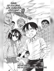 À la fête du collège, Eren, Mikasa et les autres vont devoir affronter les Titans lors d'un concours de rock ?! Eren et les autres qui sont des musiciens débutants vont-ils pouvoir réussir à monter un groupe ?! Et qui se cache derrière le mystérieux groupe masqué, No Name, qui a fait irruption sur scène et qui a beaucoup de succès ?!