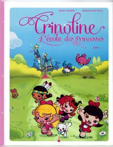 Mulan, Pocahontas, Shéhérazade, Cendrillon, Zaïna, Blanche-Neige, Idun, Belle, Aurore et Savitri : telles sont les heureuses pensionnaires de l'école crinoline ! Sous l'autorité bienveillante de mademoiselle Milune, les petites filles vont faire connaissance, découvrir le château et surtout... Apprendre à devenir des princesses ! Au programme : cours de révérence, ballades en forêt, leçons de chant, apprentissage de la danse, etc. Celle-ci n'est pas sans importance, car le point d'orgue de l'année est le bal de fin d'année, organisé conjointement avec une école de petits princes... Serge Carrère et Grégory Saint-Félix nous mitonnent une série kawaï en forme de bonbon acidulé, assumant totalement le look girly et les couleurs saturées pour incarner le rêve ultime de chaque petite fille : une école de petite princesses !