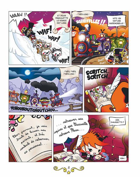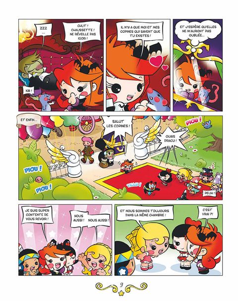 Imaginez une école perdue dans la campagne, où se retrouveraient toutes les petites filles des familles royales... Une école pour apprendre à devenir princesse ! Le rêve, non ? Au fil du temps, Cendrillon tente de s'habituer au goût du noir et de la musique rock de sa colocataire. Draculette, elle aussi, éprouve à présent une réelle amitié pour sa camarade de chambre... Et son rat Chaussette s'amuse toujours autant avec Flocon, le chaton accueilli en secret par les pensionnaires ! Bref, tout va pour le mieux dans le grand château de l'école Crinoline... Sauf qu'un mystérieux blason intrigue les petites princesses. Il semble avoir quelque chose à voir avec la directrice de l'école et un curieux visiteur nocturne... Et, comme elles sont pleines de ressources, les petites amies décident de fonder une société secrète pour enquêter : le club des étoiles filantes !