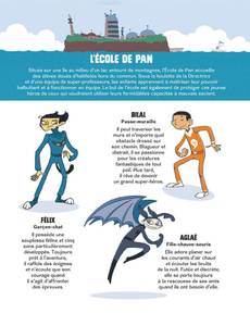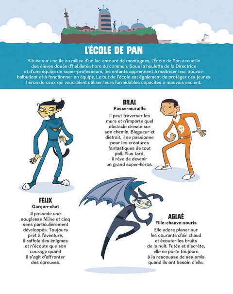 L'école de Pan est située sur une île, au milieu d'un lac immense. Construite en secret, elle est destinée à accueillir des enfants disposant d'un don. Ces apprentis super-héros y suivent une scolarité adaptée, sans perdre de vue le plus important pour eux : apprendre à contrôler leur pouvoir. Car celui-ci peut se révéler curieux ou utile, mais parfois aussi dangereux pour les autres... Dans le monde de Félix, Bilal et Aglaé, un garou possède des attributs d'animaux. C'est à la fois une chance et une malédiction, comme le garçon-chat s'en rendra compte ! Mais surtout, les pouvoirs des enfants attirent l'attention malveillante de l'Hydre et des Grands-Garous, deux groupes décidés à faire de ces enfants talentueux des armes...