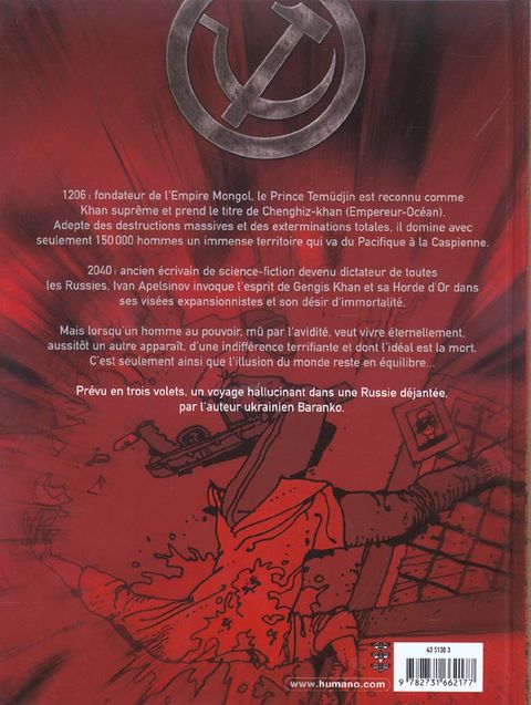 Année 2050 : le XXIe siècle n'a pas tenu ses promesses de fraternité universelle : le monde est plus divisé que jamais, rongé par de multiples conflits . L'Europe n'est pas épargnée par ce mal qui poursuit l'humanité : un nouveau rideau de Fer divise le continent entre l'Ouest, sous la houlette de l'Otan, et les immenses territoires de l'ex URSS. La Pologne est le dernier rempart occidental enccore actif face à la poussée des agresseurs de l'Est. L'état russe est sous la coupe d'une dictature féroce dirigée par Ivan Apelsinov. Ivre de pouvoir, il n'a qu'une idée en tête : reconstruire un empire qui s'étendrait du pacifique à l'océan atlantique. Cet admirateur forcené de Ghengis Khan a pour cela un plan démoniaque. Les longues études qu'il a mené dans le domaine du mysticisme l'ont persuadé qu'il est possible de ressusciter l'esprit du Grand chef barbare et de refonder ainsi sa horde. Mais avant de fondre sur l'Europe de l'Ouest, Ivan Apelsinov va trouver sur sa route les moines Bouddhistes de la république de Tuva. Séparatistes convaincus, leurs actions viendront entraver la volonté hégémonique du dictateur Russe. Un autre obstacle se dressera contre lui, et pas des moindres: le Dernier Tchétchène, rescapé mystique d'un holocauste nucléaire.