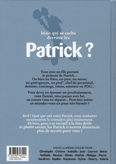 Votre prénom a du sens !Avec la première série de L'encyclopédie des prénoms en bande dessinée, Vents d'Ouest lançait un nouveau type de BD, aussi inépuisable qu'indispensable ! Voici quatre nouveaux ouvrages dans lesquels vous allez découvrir tout ce qu'il y a à savoir, avec un humour toujours aussi décapant, sur les Sophie, Thierry, Patrick, Stéphanie Découvrez pour chacun de ces prénoms, ses origines ses défauts, ses particularités, ses qualités Mais aussi quelles sont ses forces, ses faiblesses, ses passions, et ses amours. Cette collection d'un nouveau genre se présente comme le cadeau idéal pour les anniversaires, les fêtes ou juste pour le plaisir . Car un prénom, c'est pour la vie, et il en dit long sur notre personnalité!