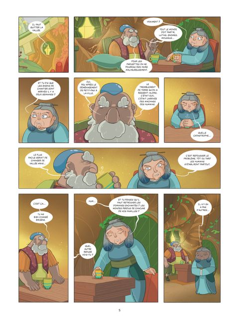 Quand Fifrèle découvre la ville en compagnie de son grand-père.Fifrèle a bien grandi, elle a pris conscience de ses pouvoirs. Aujourd’hui, alors que la vallée des lutins est plus que jamais menacée par l’activité humaine, tout le petit peuple unit ses forces pour arrêter le chantier qui détruit leur habitat. Hélas, dans cette lutte inégale, un incendie dévastateur provoque le décès malheureux d’un membre de la famille des lutins. Mais ce n’est pas tout, Bigarée, l’abeille de Fifrèle est aussi blessée. Pour la sauver, la jeune fille va devoir prendre un grand risque … s’aventurer en ville ! Heureusement que le grand-père de Fifrèle va l’épauler durant ce périlleux voyage. Les hommes ont transformé leur environnement et ne vivent plus en harmonie avec la nature. En ville, c’est le chaos… la pollution et les bruits agressent les lutins perdus au milieu du béton. Cette excursion pour trouver le remède qui sauvera Bigarée, sera aussi l’occasion pour Fifrèle de se rapprocher de son aïeul et d’apprendre avec lui à maîtriser ses pouvoirs. Après un premier tome salué par la critique, nommé pour le prix du Journal de Mickey et pour le premier prix BD jeunesse du Cabaret Vert, Arnaud Boutle continue de sensibiliser les enfants à l’écologie, tout en leur ouvrant grand les portes du merveilleux avec un album toujours aussi beau et coloré. Une belle aventure et un récit d’apprentissage à partager en famille.