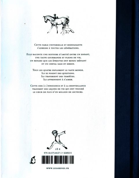 Cette fable universelle et bienfaisante s'adresse à toutes les générations. Elle raconte une histoire d'amitié entre un enfant, une taupe gourmande et pleine de vie, un renard que les épreuves ont rendu méfiant et un cheval sage et serein. Tous les quatre explorent le vaste monde. Ils se posent des questions. Ils traversent des tempêtes. Ils apprennent à s'aimer. Cette ode à l'innocence et à la bienveillance transmet des leçons de vie qui ont touché le coeur de plus d'un million de lecteurs.