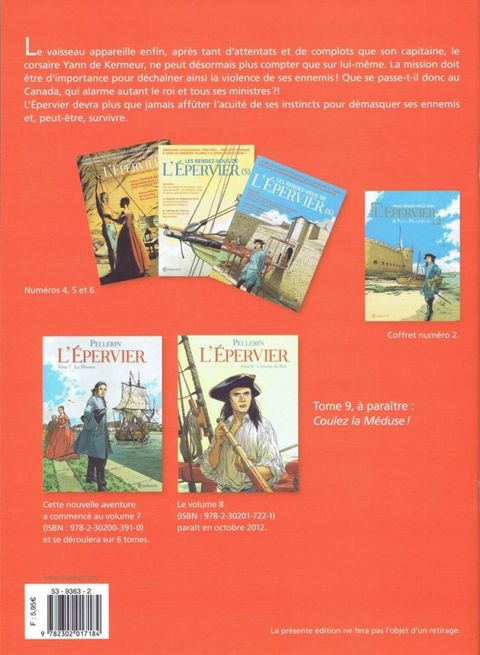 Yann de Kermeur a échappé à plusieurs attentats dont la sulfureuse Aude de Séverac semble tirer les ficelles. Mais l'équipage de l'Épervier est fidèle, et les lettres du Roy de France ont permis l'armement du bateau en un temps record. La Méduse hisse grand ses voiles et cingle vers le Canada. Mais un premier danger obscurcit déjà l'horizon...