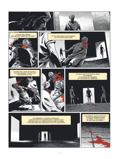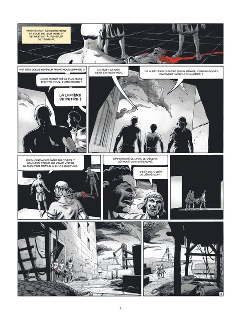Et la fraternité chassa les ténèbres...En mourant, le roi David confie Israël au plus sage de ses fils : Salomon. Outre la mission de maintenir la paix dans son royaume, conservant les alliances âprement établies par son père, Salomon a la charge de bâtir la Maison de Dieu, le Temple qui accueillera l'Arche d'Alliance... Mais l'oeuvre est telle qu'elle nécessite un maître en architecture, initié par les Anciens, héritier des bâtisseurs de Der el Medineh. Le roi de Tyr, ami d'Israël, connaît cet homme qu'il emploie dans la conception de ses plus grands travaux et qu'il va envoyer auprès de Salomon. Il se nomme Hiram. L'Épopée de la Franc-maçonnerie commence alors, Hiram devenant le légendaire fondateur de l'Ordre... Mais plus tard, à la destruction du Temple de Salomon, la pierre comportant les trois symboles « gravés » par Dieu, une étoile, un croissant et une croix, sera brisée en trois parties. Trois veuves en récupèrent chacun une...
