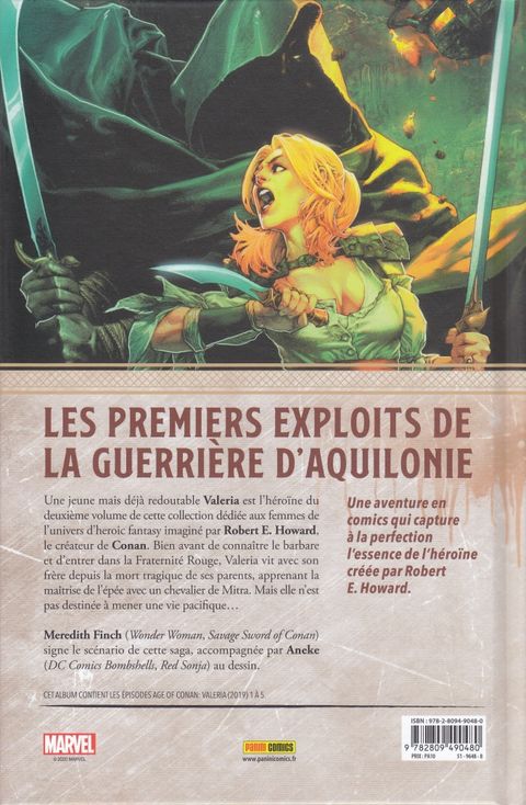 Découvrez Valéria, une jeune guerrière qui est à la recherche des assassins de son frère. Avide de vengeance, ils vont payer le prix fort de leur crime. Cette histoire précède un des récits cultes des aventures de Conan : Les clous rouges, écrit par le légendaire Robert E. Howard. Deuxième mini-série se déroulant dans l'univers de Conan le Barbare. Elle est signée par Meredith Finch (Wonder Woman, Savage Sword of Conan) et Aneke (Red Sonja, Bombshells), des autrices habituées des personnages de Robert E. Howard.