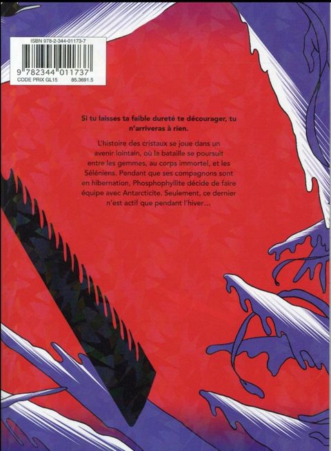 L'histoire des cristaux forts, fragiles et beaux, se joue dans un avenir lointain, où la bataille se poursuit entre les gemmes, au corps immortel, et les Séléniens. Pendant que ses compagnons sont en hibernation, Phosphophyllite décide de faire équipe avec Antarcticite. Seulement, ce dernier n'est actif que pendant l'hiver...