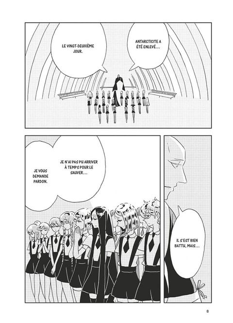 Dans un avenir lointain, la bataille entre les cristaux au corps immortel et les Séléniens se poursuit. Après avoir perdu ses bras et en avoir acquis de nouveaux en alliage métallique pendant l'hiver, Phos, le personnage principal, semble cependant avoir perdu tout souvenir de Cinabre...