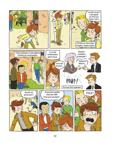 Romarine rêverait d'être une espionne avec autant d'accessoires que James Bond. Grâce à son imagination et à son sens de la débrouillardise, elle va faire bien mieux : elle va créer ses propres gadgets et ainsi triompher de tous les mystères, qu'il s'agisse de mamans clonées ou de la présence d'antihumains en classe de CM2. Un album sous le signe de l'imagination et du bricolage !Ce 4e tome réunit trois histoires qui mettent en scène des gadgets tous plus loufoques les uns que les autres :« L'espionne déclonne », « L'espionne s'en mêle » et « L'espionne se croit tout permis ». L'occasion d'admirer l'imagination sans faille de Romarine, mais aussi l'humour de ses autrices ! Un apprentie espionne irrésistible ! Imaginée par l'autrice culte Marie-Aude Murail, l'espionne est une héroïne intelligente, têtue et attachante qui a déjà séduit XXX lecteurs dans des romans désopilants. Dans cette adaptation en BD, l'illustratrice Églantine Ceulemens ajoute à cette recette son trait généreux et tendre : irrésistible !