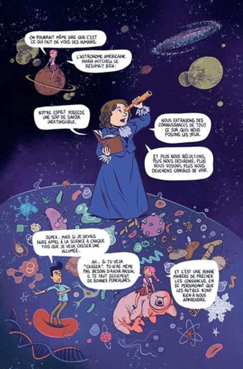 J’ai eu beaucoup de plaisir à lire cette BD dont les notions abordées parfois complexes sont génialement expliquées (aussi bien par le texte que l’image) ! A mettre dans les mains de tous nos ados (et des adultes d’ailleurs!)