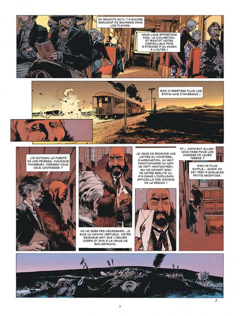 Desberg et Labiano terminent ce diptyque de L'Étoile du désert dans le sang et les larmes... Finnsbury, le commissaire aux affaires indiennes, n'a qu'un seul objectif : expulser les Indiens de la région. Pour cela, il flatte l'orgueil des jeunes guerriers et manipule les cow-boys sans scrupule. Cadavres et vies brisées jonchent les plaines de ce Far West rêvé. Le sort ne pouvait que se retourner contre celui-là même qui donnait les ordres à Finnsbury : le haut fonctionnaire Montgomery, à Washington...