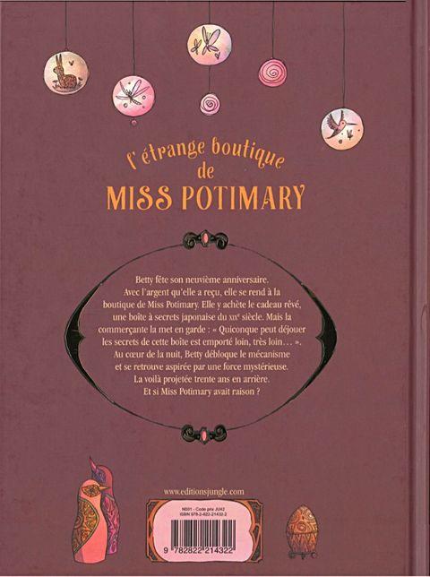 Le jour de son neuvième anniversaire, Betty reçoit de quoi s’acheter un cadeau toute seule, comme une grande. En se promenant dans les rues de son village, elle tombe sur une surprenante boutique qu’elle n’avait jamais remarquée. A l’intérieur, c’est un véritable capharnaüm, des objets mystérieux s’entassent jusqu’au plafond dans une atmosphère de magie et de poussière. Betty craque pour une magnifique boîte à secrets japonaise : son cadeau est tout trouvé. Mais la propriétaire de la boutique, l’étrange Miss Potimary, la met en garde : cette boîte renferme des mystères, il ne faut pas l’utiliser n’importe comment ! De retour chez elle, la petite fille s’acharne à résoudre le casse-tête mais sans succès. Au bout de plusieurs heures, en pleine nuit, le mécanisme finit par s’ouvrir… Betty et Dare-Dare, sa souris de compagnie, sont aspirées par un puissant tourbillon et se retrouvent projetées 30 ans en arrière !