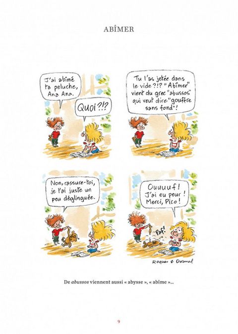 Férus d'étymologie, Dominique Roques et Alexis Dormal s'emparent des origines les plus surprenantes et étonnantes des mots pour les expliquer à travers leur personnage fétiche, Pico Bogue. En une page et un gag, chaque mot voit ainsi ses racines ou origines détaillées, le tout en riant ou souriant. Incontournable pour tous les curieux de la langue, enfants ou adultes.