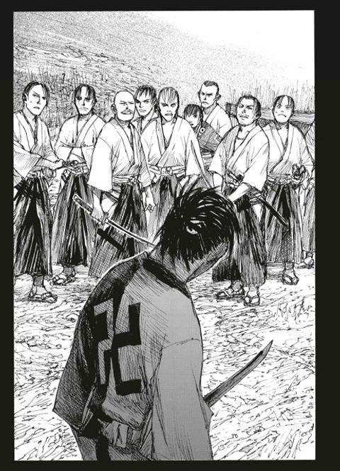Suite aux événements de Kaga, Rin a pris la fuite en compagnie d'Anotsu, affaibli par la maladie. Rattrapés par leurs poursuivants, leur destin semble scellé lorsqu'ils sont sauvés in extremis par l'arrivée de Manji, bientôt suivi d'autres têtes connues. Les trajectoires de tous les protagonistes convergent dans une mêlée générale en forme d'apothéose qui marque la fin d'une étape. De retour à Edo, les choses ne seront plus jamais les mêmes, ni pour Rin et son garde du corps, ni pour l'Ittôryû. Ce septième volume de la nouvelle édition contient les tomes 13 et 14 de la série.