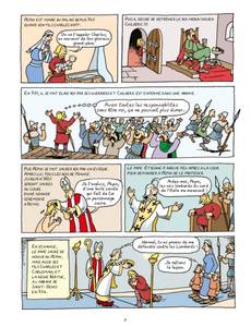"Moi, Charles 1er, roi des Francs, roi des Lombards et empereur romain d'Occident, je règne à la fin du VIIIe siècle sur un empire couvrant l'Europe occidentale. Il est soumis à ma seule autorité et placé sous la protection de mon Dieu chrétien. Plus tard, je serai appelé Charlemagne, "Carolus Magnus" en latin, c'est-à-dire Charles le Grand". Cette bande dessinée retrace le destin de ce "Sacré Charlemagne" , l'un des plus grands souverain de France. Avec six doubles pages documentaires pour approfondir le sujet.