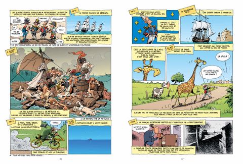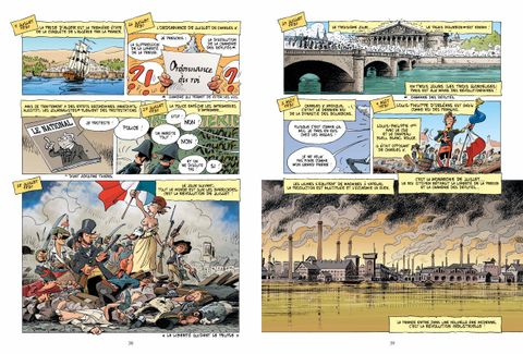 Dans ce troisième tome, cap sur la IIe république. Après un passage par le Second Empire, des escales vous sont proposées pour découvrir la Commune et la Belle Époque. Un arrêt prolongé est prévu aux Première et Seconde Guerres mondiales, avec entre les deux une excursion dans les Années folles. La fin du voyage est programmée aux alentours de la Ve république. Accrochez-vous à votre album, le voyage dans le temps débute maintenant. Ah oui, si ça secoue, ne paniquez pas, c'est sûrement dû aux éclats de rire !