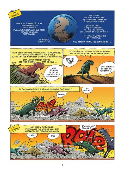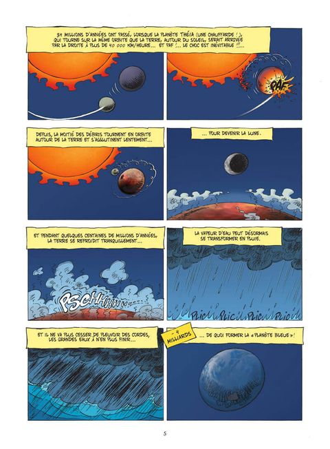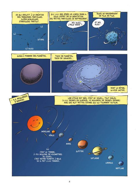 Parcourez notre histoire, du Big Bang au roi Soleil. Dans ce premier tome, histoire et humour se mélangent dans un délicieux cocktail temporel, de la création de l'univers à partir de rien du tout aux premières balades sur la terre ferme des premières bestioles et de la chute de l'empire romain au règne de Louis XIV. Accrochez-vous à votre album, le voyage dans le temps débute maintenant. Ah oui, si ça secoue, pas d'inquiétude, ce sera sûrement dû aux éclats de rire !