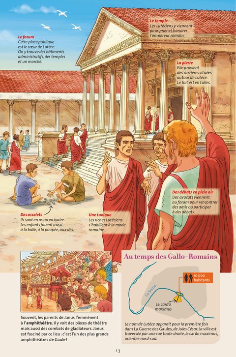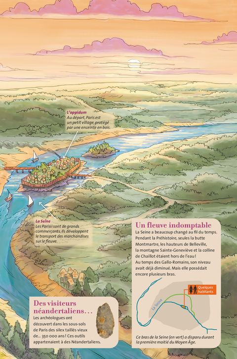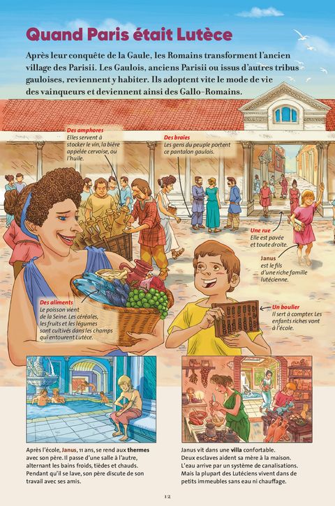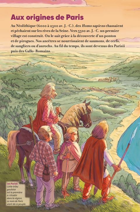 Qui étaient les premiers habitants de Paris ? Quand a-t-on construit Notre-Dame ? Depuis quand existe le musée du Louvre ?La découverte de Paris et de ceux qui ont marqué son histoire en BD, avec des pages documentaires et de grandes doubles illustrées.