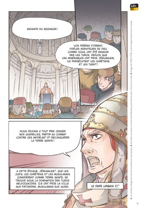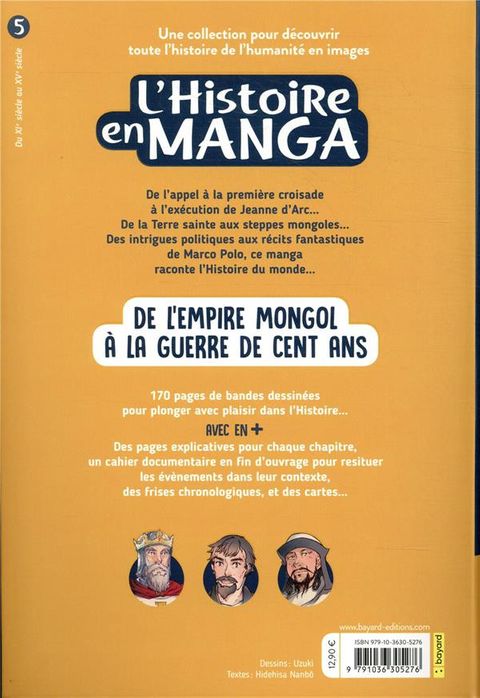 Le Nouveau Tome de cette Collection qui Vise à Couvrir Toute l'Histoire de l'Humanité se Découpe en 5 Chapitres :1 - les Croisades2 - Philippe le Bel, un Roi Ambitieux3 - Jeanne d'Arc et la Guerre de Cent Ans4 - Gengis Khan et l'Empire Mongol5 - Marco Polo et les Relations Diplomatiques entre l'Orient et l'Occidentoutre le Plaisir de Découvrir l'Histoire Scénarisée et Incarnée Grâce aux Dessins Mangas, le Jeune Lecteur y Retrouve des Notions Enseignées dans le Cadre du Programme d'Histoire du Collège.Le Chapitre sur Philippe le Bel Notamment Illustre Bien l'Affirmation de l'Etat Moderne Face aux Pouvoirs Féodaux, un Basculement Historique qu'on Retrouve dans le Programme d'Histoire de 5e qui Aborde « l'Affirmation de l'Etat Monarchique dans le Royaume des Capétiens et des Valois. »les Bandes Dessinées Sont Agrémentées de Pages Documentaires, de Frises et de Cartes Détaillées qui Donnent des Repères Historiques pour Ancrer le Récit dans son Contexte et Développent les Eléments Présents en Toile de Fond dans les Différents Chapitres.
